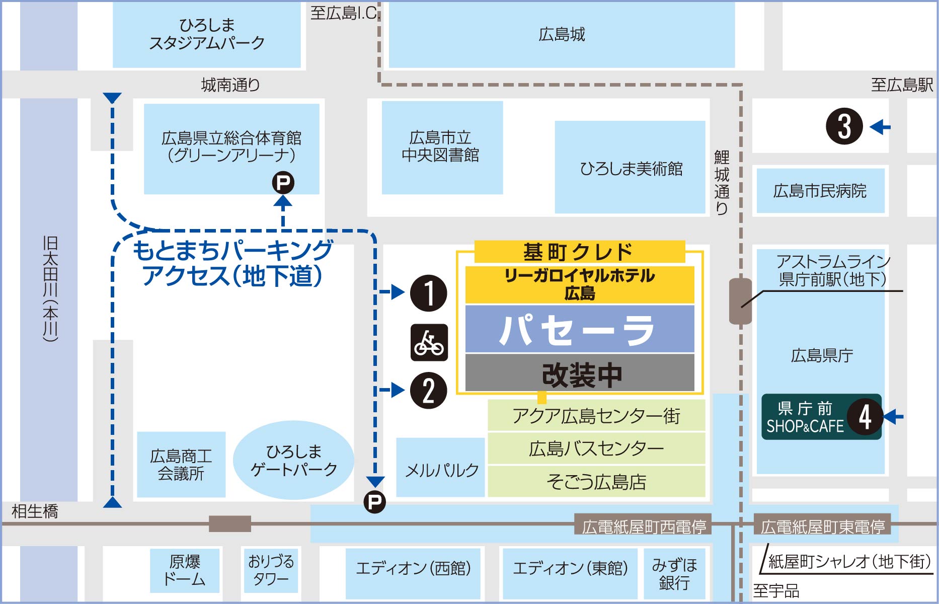 - 広島電鉄「紙屋町西」「紙屋町東」徒歩3分