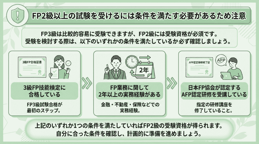 FP2級以上の試験を受けるには条件を満たす必要があるため注意