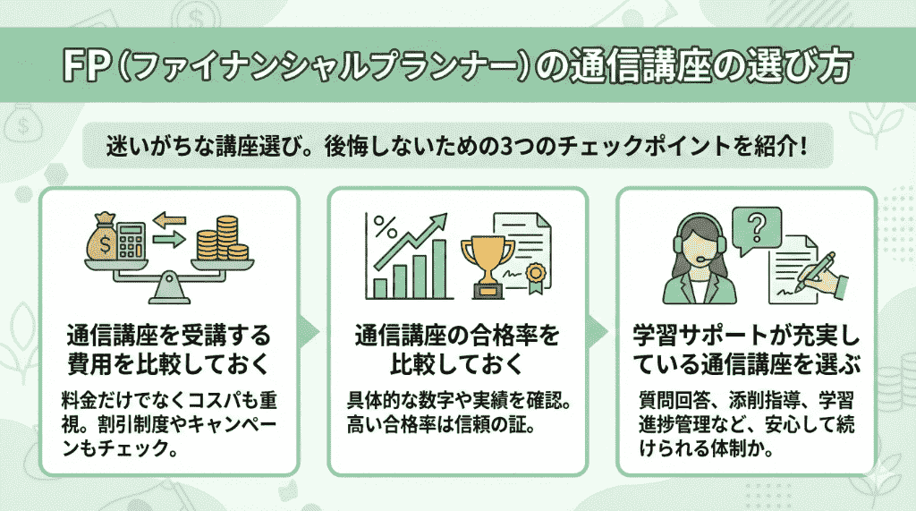 - 4 FP(ファイナンシャルプランナー)の通信講座の選び方
