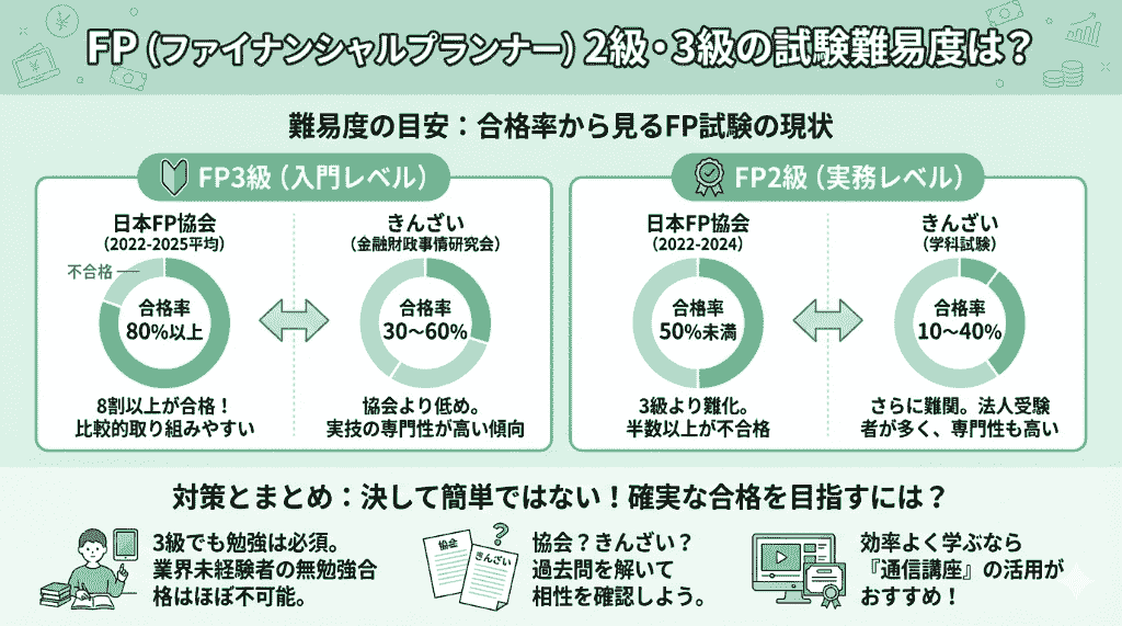 - 1 FP(ファイナンシャルプランナー)2級・3級の試験難易度は?