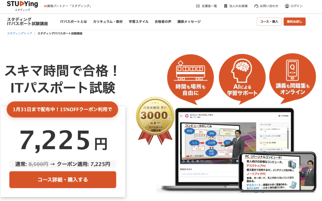 価格ITパスポート スタンダードコース:11,000円~