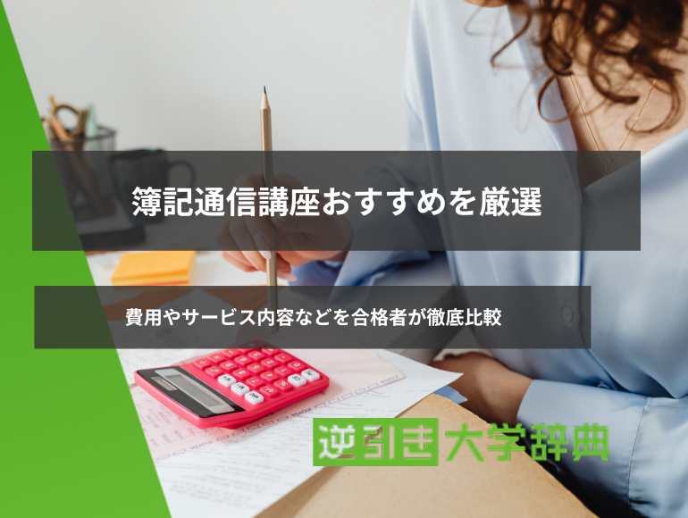 当記事では、簿記試験合格者の体験談も交えながら、逆引き大学辞典おすすめの簿記の通信講座10社を徹底解説します。また、通信講座で学習するメリット、通信講座が向いている人、通信講座を利用して学習するコツなども解説します。