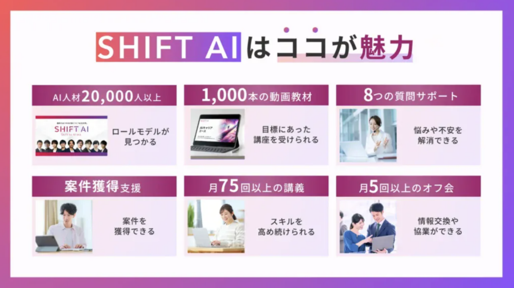 独学で一度は生成AIを試してみたものの、「自分の仕事にどう当てはめればいいか分からない」と感じている段階の人に向いたスクールです。