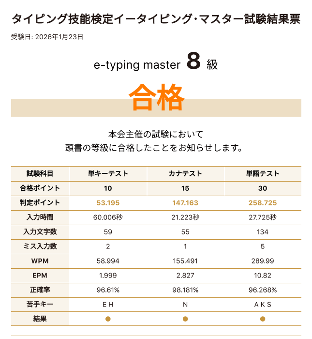 | タイピング技能検定8級 | 民間 | ◯ | 無料 |