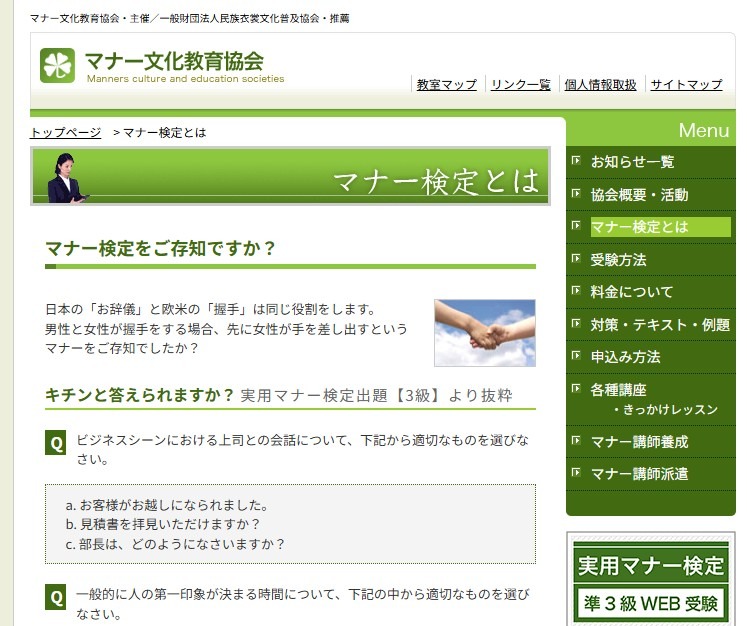 | 実用マナー検定準3級 | 勉強 | あり | 民間資格 |
